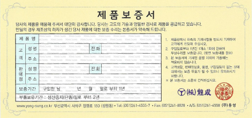 Á¦Ç°¿¡ µû¶ó 1ȸ ¹«»ó¼ö¸®¸¦ º¸ÁõÇÏ´Â Á¦Ç°º¸Áõ¼°¡ ÀÖ½À´Ï´Ù. ¸ðµç Á¦Ç°¿¡ µé¾î ÀÖ´Â, ǰÁúÀ» º¸ÁõÇѴٴ ǰÁúº¸Áõ¼¿Í´Â ´Ù¸¨´Ï´Ù. Á¦Ç°º¸Áõ¼¸¦ °¡Áö°í °è½Å °í°´²²¼ Á÷Á¢ ¹æ¹® ¼ö¸® ½Ã Á¦Ç°º¸Áõ¼¸¦ Á¦ÃâÇØ Áֽðí, ÅÃ¹è µî Á÷Á¢ ¹æ¹®ÀÌ ¾Æ´Ò °æ¿ì Á¦Ç°º¸Áõ¼ÀÇ ³»¿ëÀ» ÀÛ¼ºÇÏ½Ã¾î ¼ö¸®ÇÒ Á¦Ç°°ú ÇÔ²² º¸³»ÁÖ½Ã¸é µË´Ï´Ù.