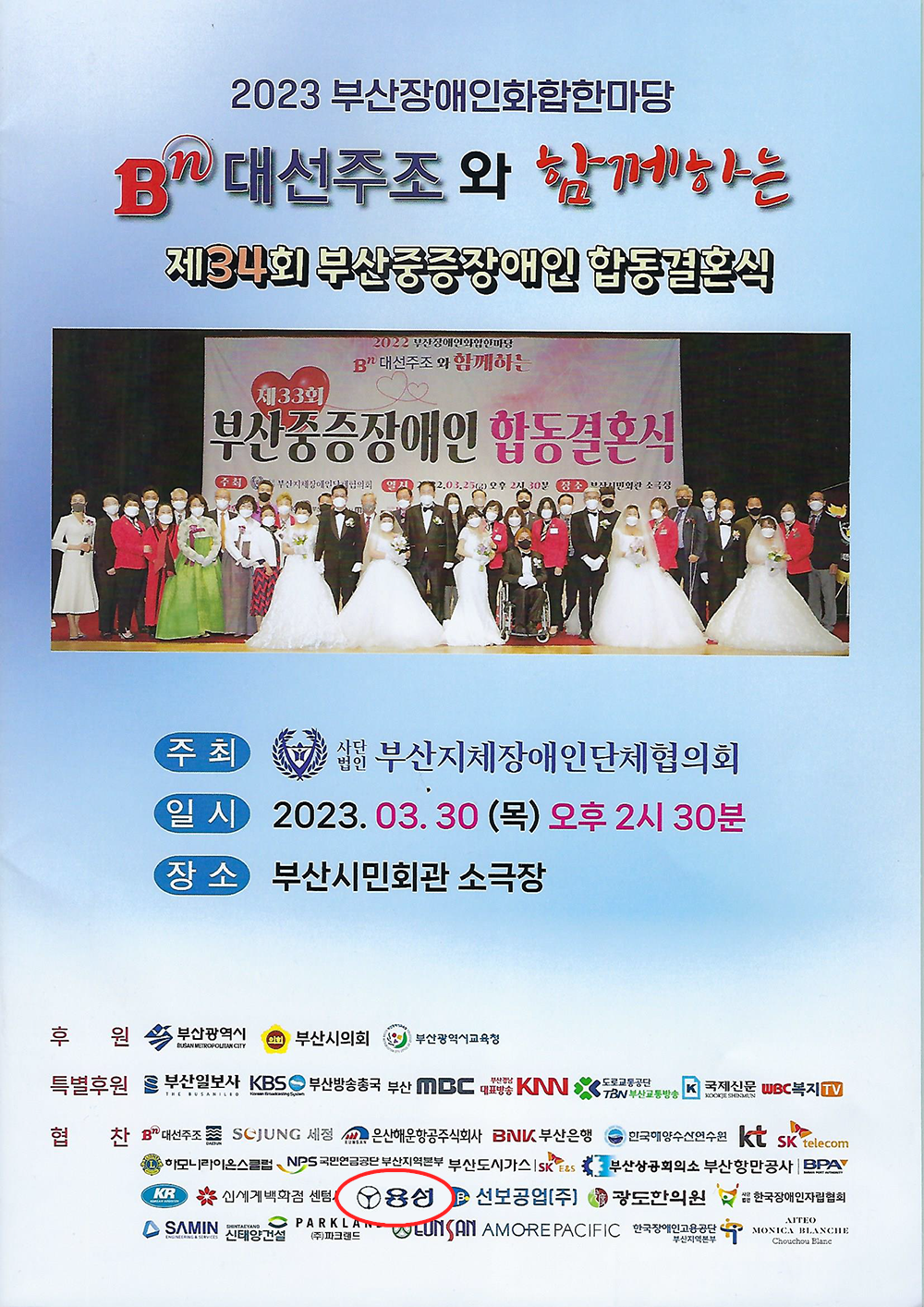 ºÎ»ê ÁßÁõÀå¾ÖÀÎ ÇÕµ¿°áÈ¥½ÄÀº ºÎ»êÁöüÀå¾ÖÀδÜüÇùÀÇȸ°¡ °æÁ¦Àû ¾î·Á¿òÀ¸·Î °áÈ¥½ÄÀ» ¿Ã¸®Áö ¸øÇÑ ÁßÁõÀå¾ÖÀεéÀ» À§ÇØ ¸¶·ÃÇÑ Çà»çÀÔ´Ï´Ù.